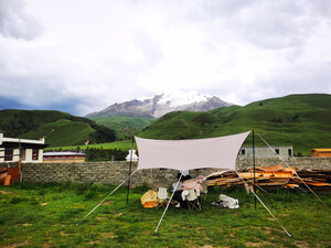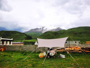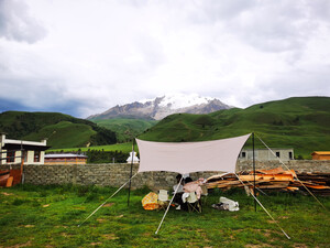 天幕到手后就带着来到了格聂南线自驾,在雪山下搭起天幕,煮茶喝,甚是惬意。天幕搭建很方便,防水效果也好