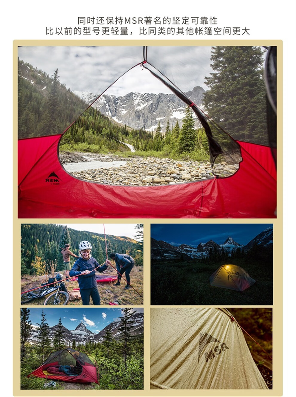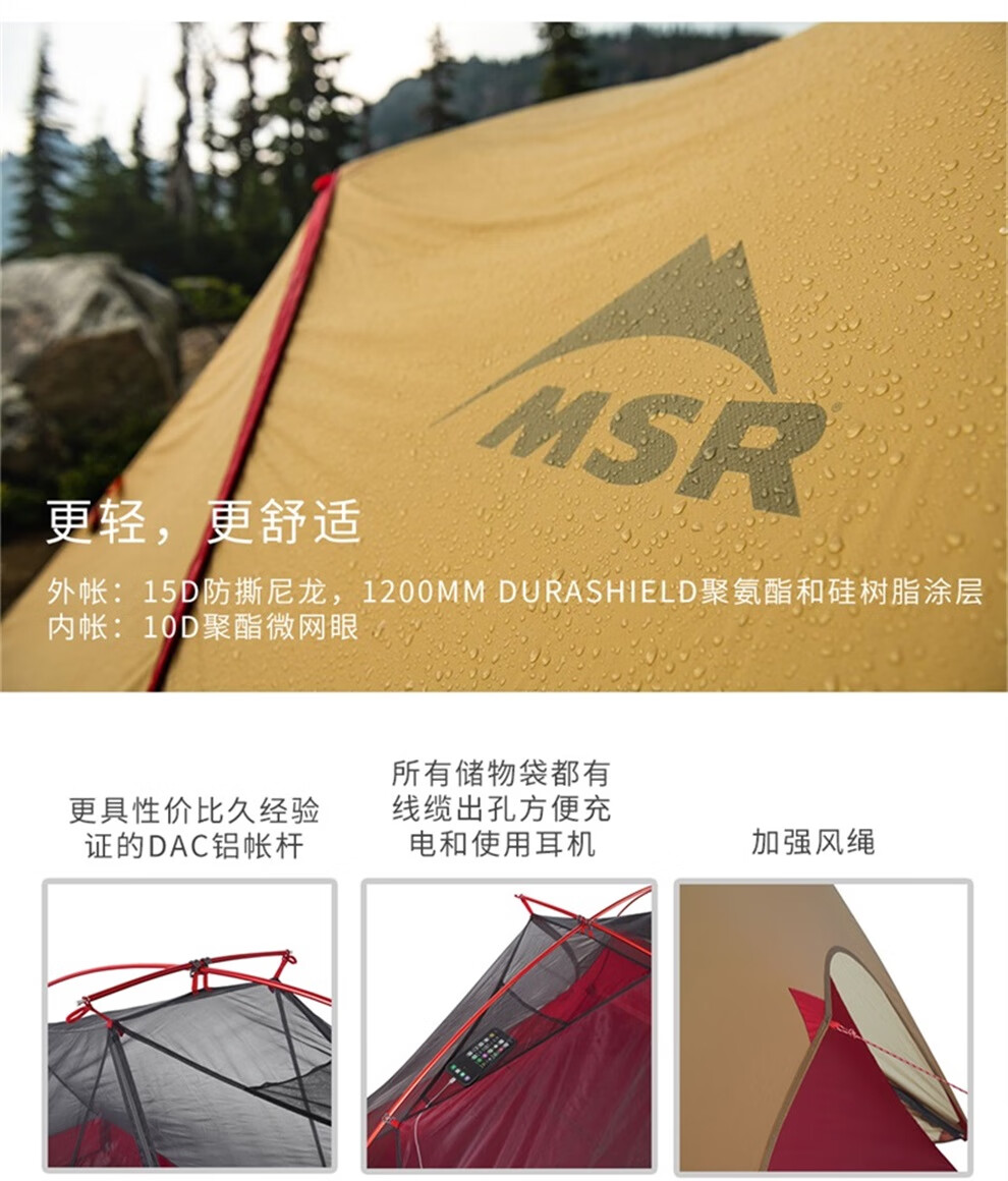 MSR户外露营帐篷三季野营超轻半自立防风雨帐篷轻量徒步装备过夜帐篷 三人帐-11513