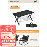 原始人户外蛋卷桌便携式折叠桌野餐桌椅露营装备用品野炊野营套装 90磨砂黑+经典典雅黑克米特椅*2