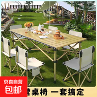 户外折叠桌椅野外露营蛋卷桌便携月亮椅沙滩庭院烧烤摆摊桌凳套装 黄色53cm方桌-加强加厚-送收纳袋