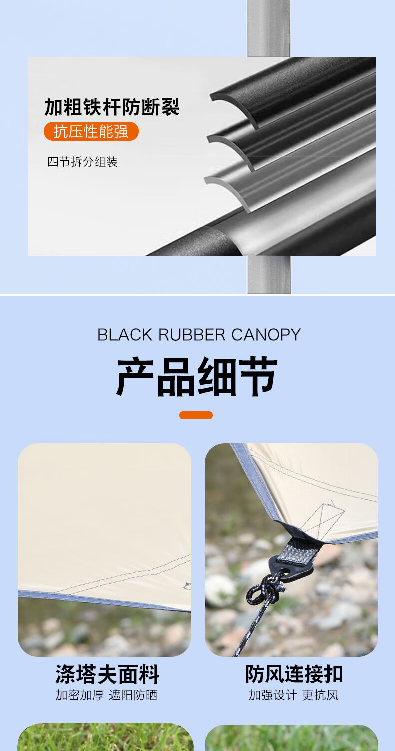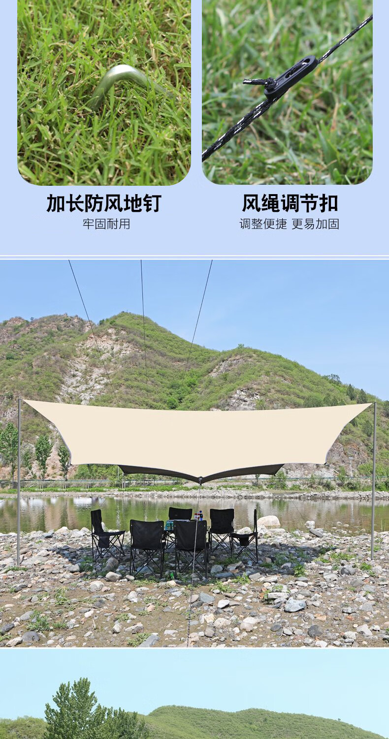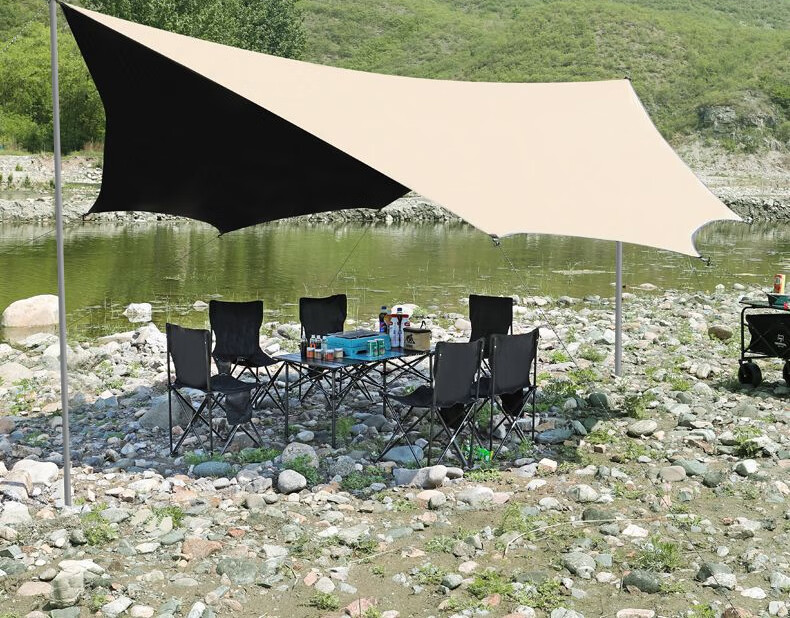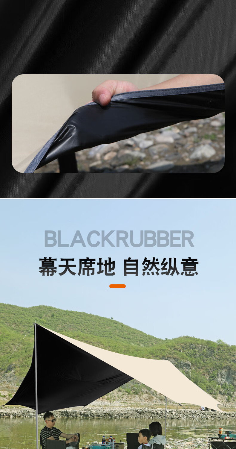 妙普乐天幕帐篷户外装备露营野餐野营黑胶防晒防风防雨遮阳棚布 //.升级冷银胶情侣出行(3*3)