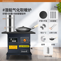 烽点取暖炉家用室内柴火灶煤炭两用冬季新型无烟气化烤火户外养殖升温 升级潜艇气化炉+炒锅水箱4米配件