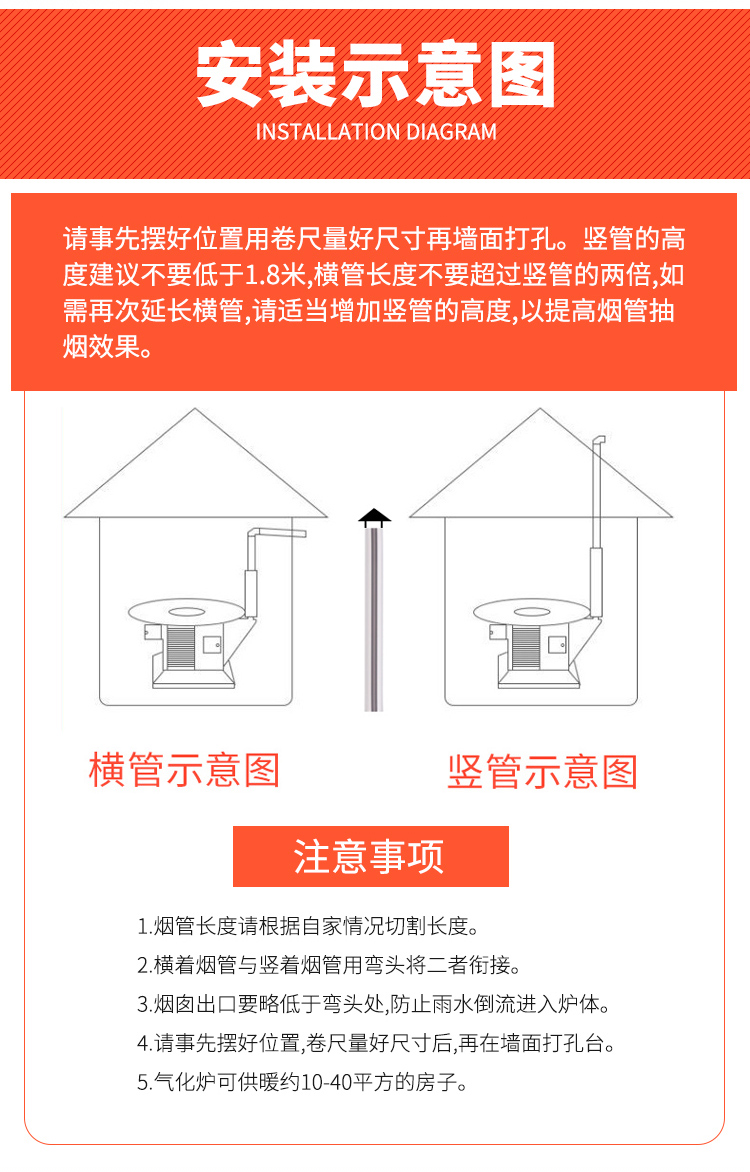 杰亚森 【SF送货上门】高端柴煤两用铝合金气化炉取暖炉新式农村家用 铝合金炉+1.2米 玻璃红面单面版