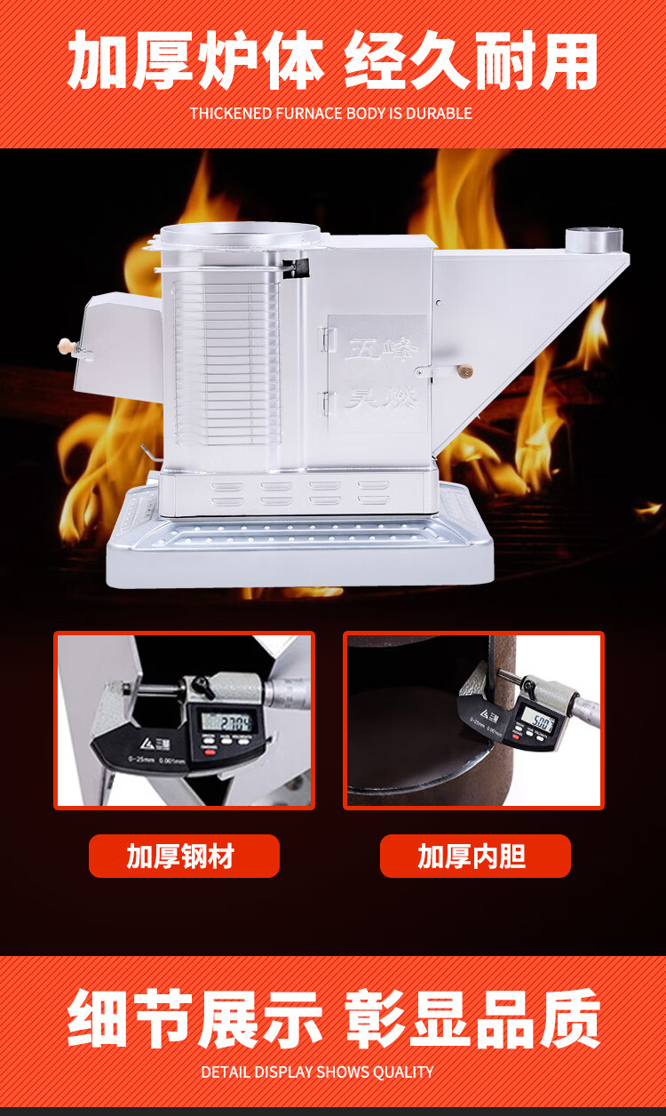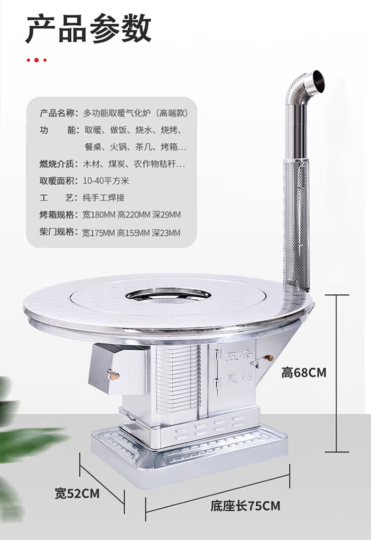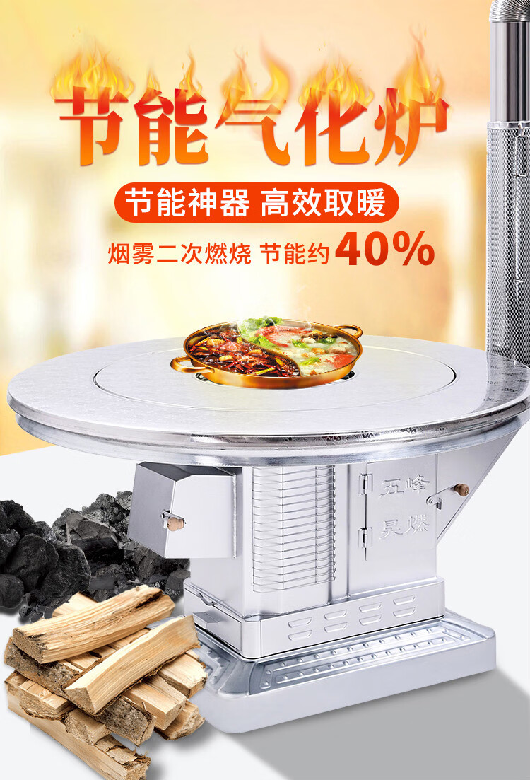 璞灶旺冬季柴火灶加厚加高农村取暖炉烧柴家用节能柴煤两用多功能回风炉 1米圆桌不锈钢(柴火炉)
