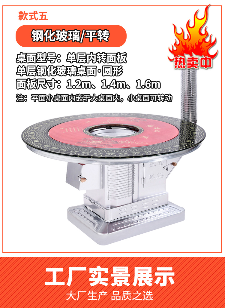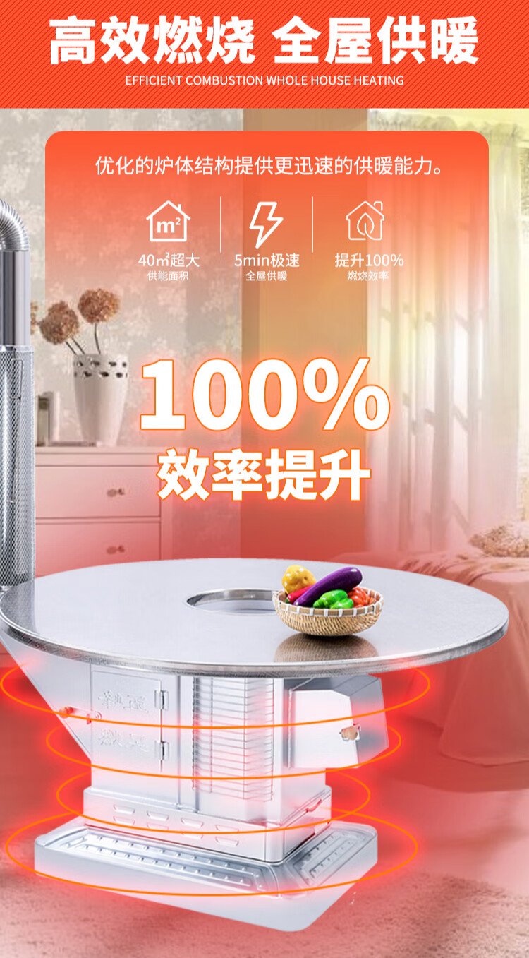 【送货上门】昊燃·取暖炉农村冬季新款气化炉室内烤火 加厚柴煤两用多功能转盘节能无烟采暖炉回风炉 1米加厚防爆玻璃单桌面 (柴煤两用)