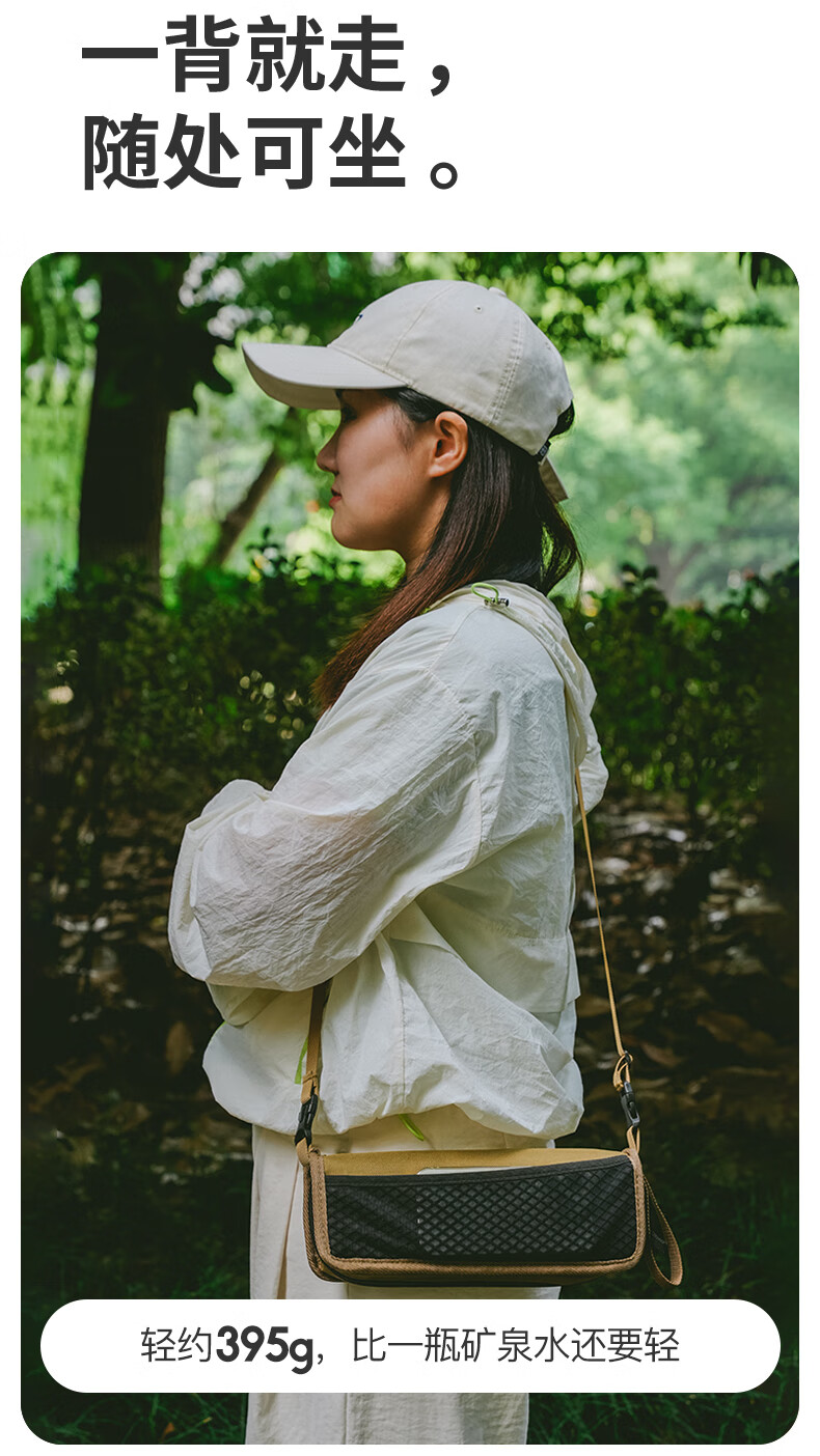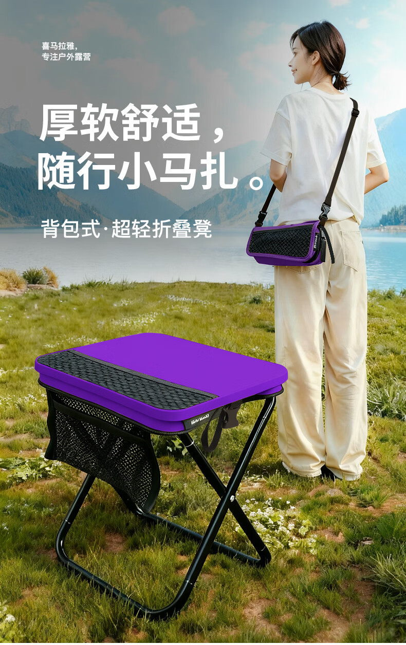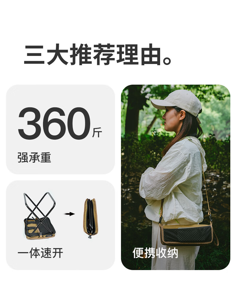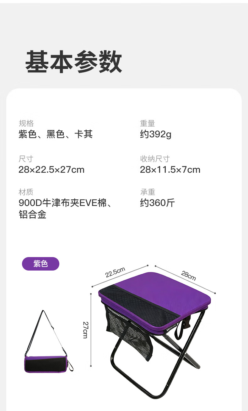非常便携的小马扎子,收纳包设计,携带非常方便,展开也非常方便,带了长长的肩带。打开坐上去也很稳固一百五十多斤的我做很舒服。