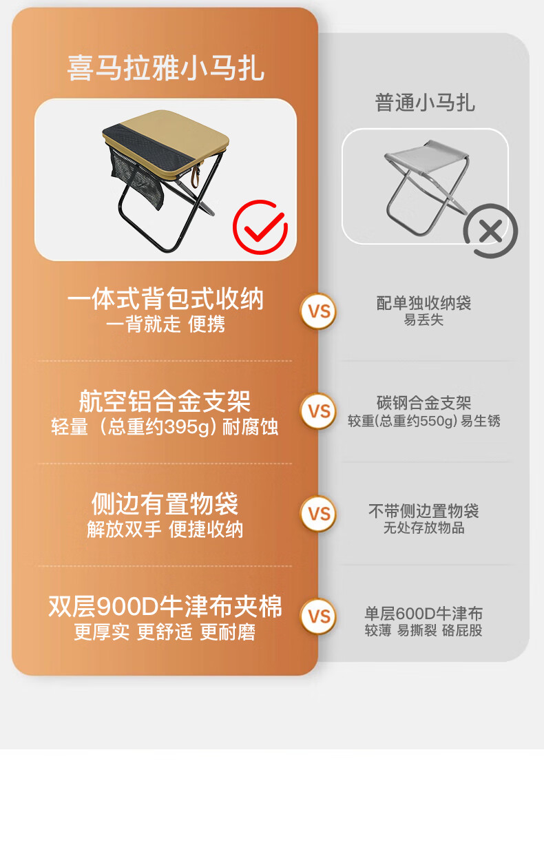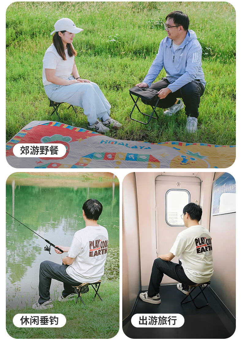 喜马拉雅户外折叠椅便携多功能钓鱼椅露营小马扎可叠放小板凳家用座椅 超轻折叠椅卡其