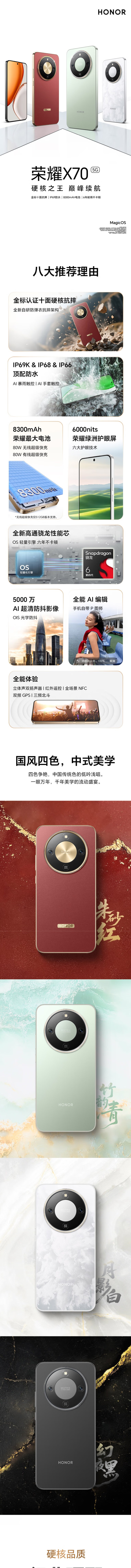荣耀 Magic8 Pro 选购 第五代骁龙8至尊版 2亿超夜神长焦 双3D解锁 谢霆锋同款 新品5G AI手机 荣耀X70 竹韵青 12GB+256GB 官方标配【180天只换不修+三年质保+碎屏险】
