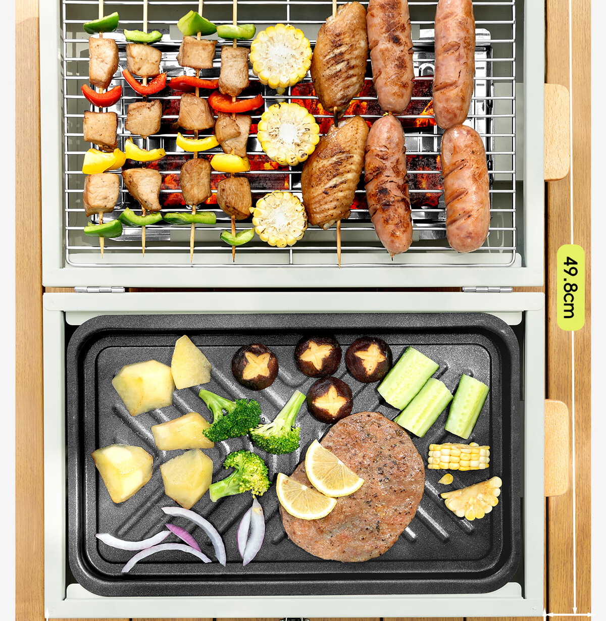 北山狼 双面煎烤两用圆形户外烧烤炉家用庭院碳烤炉露营烧烤架 二代抽屉式·白色-H2:【烤网*2+烤盘】