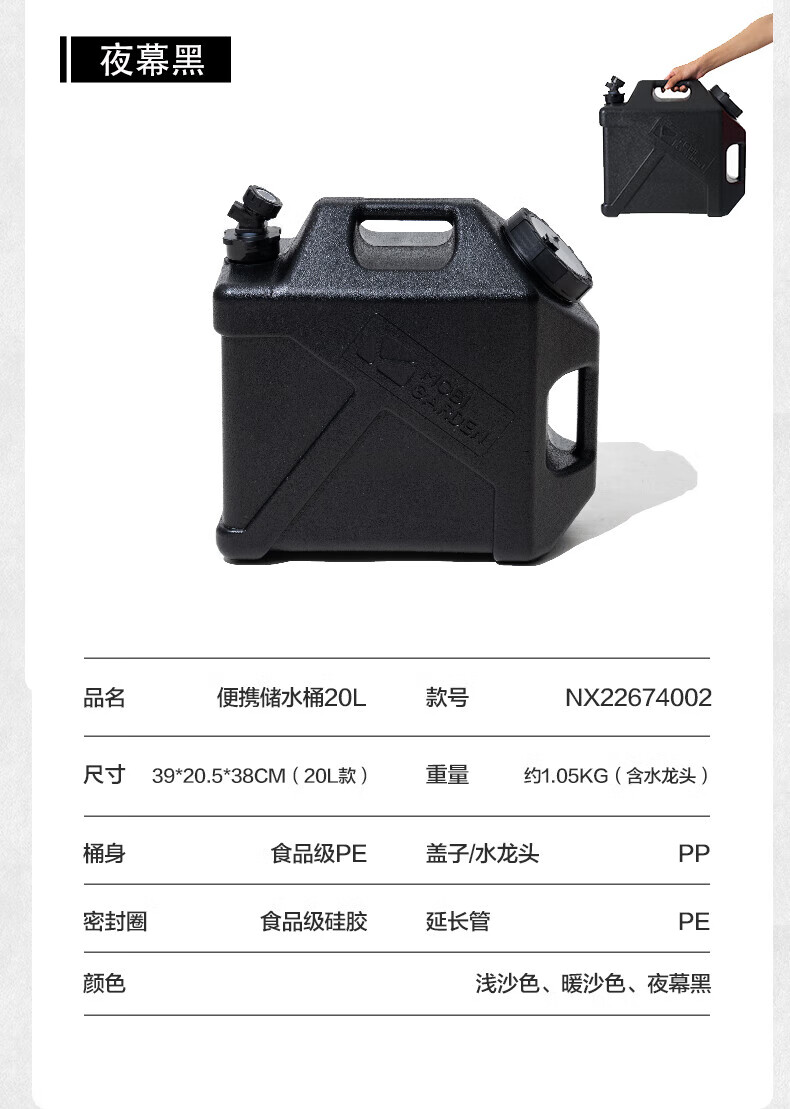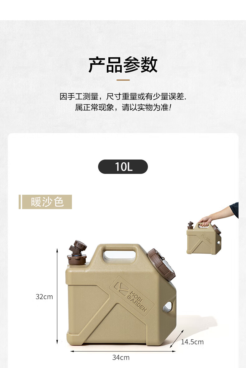 牧高笛露营便携手提水桶车载大容量储水箱带龙头QZ 牧泽便携水桶10L 浅沙色