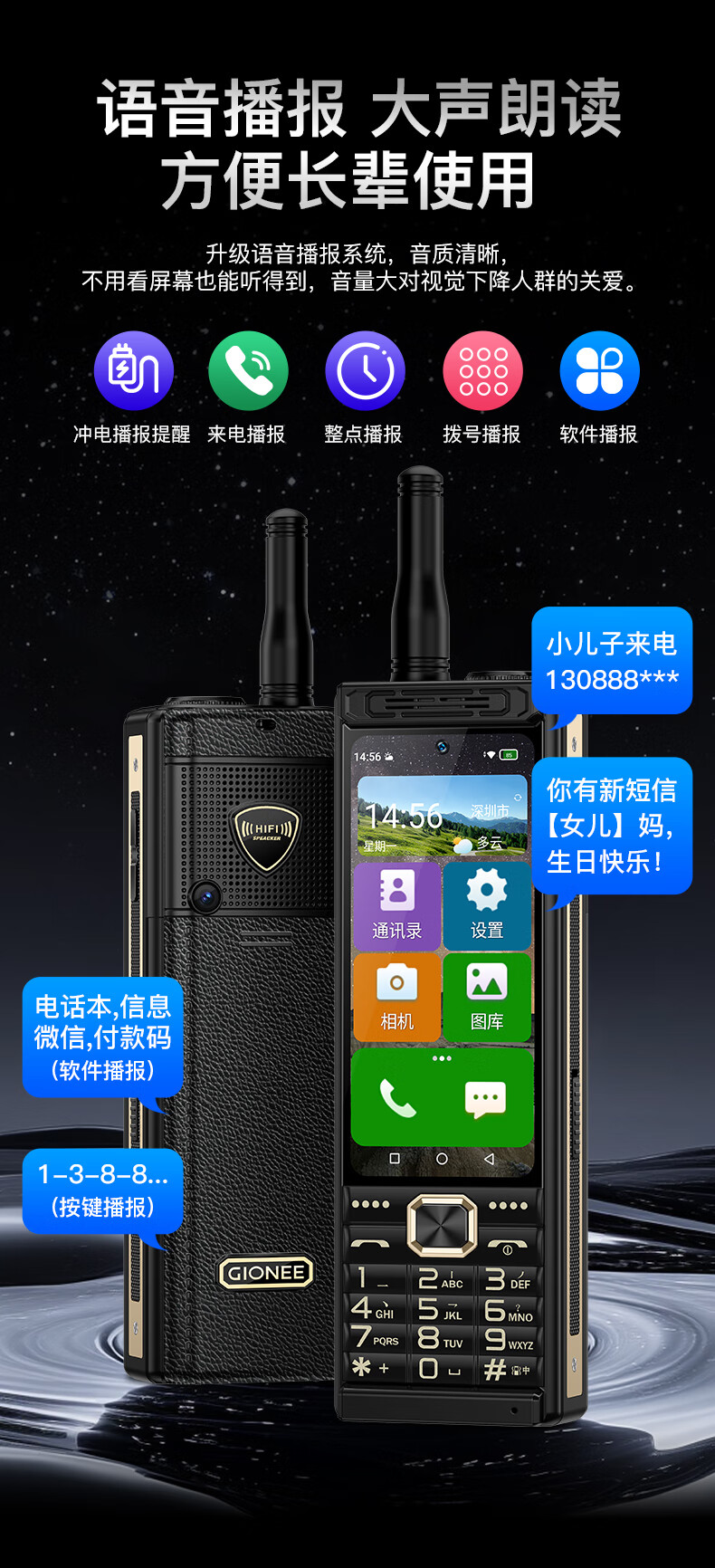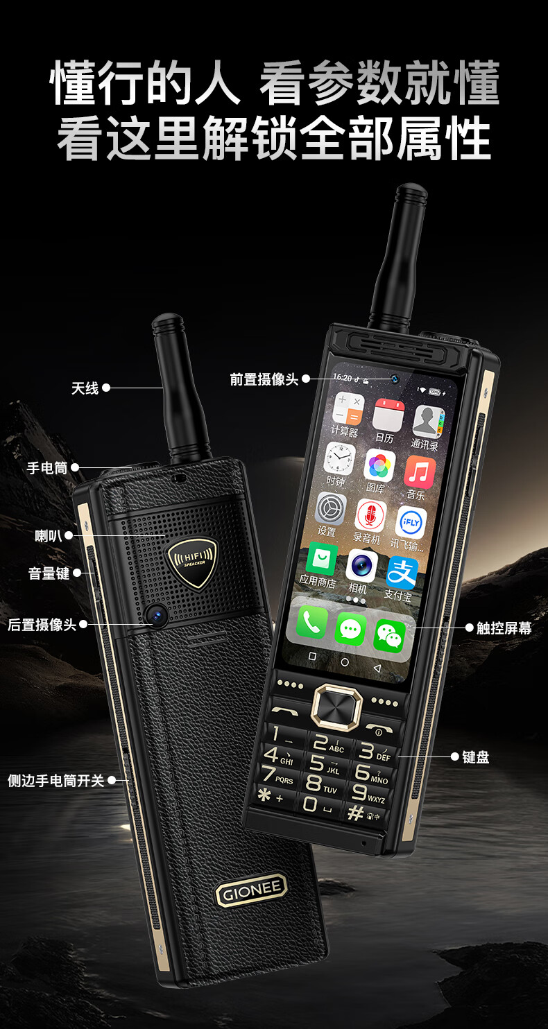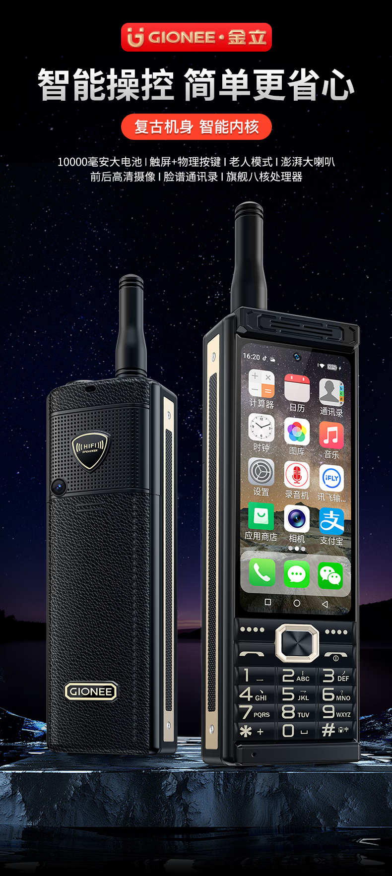 Gionee金立D999商务机经典直板按键老人手机老年手机老年机大字大声大屏备用手机 黑色【经典怀旧商务大哥大+触屏按键一体二合一】 【8核+128GB】老人智能双模式