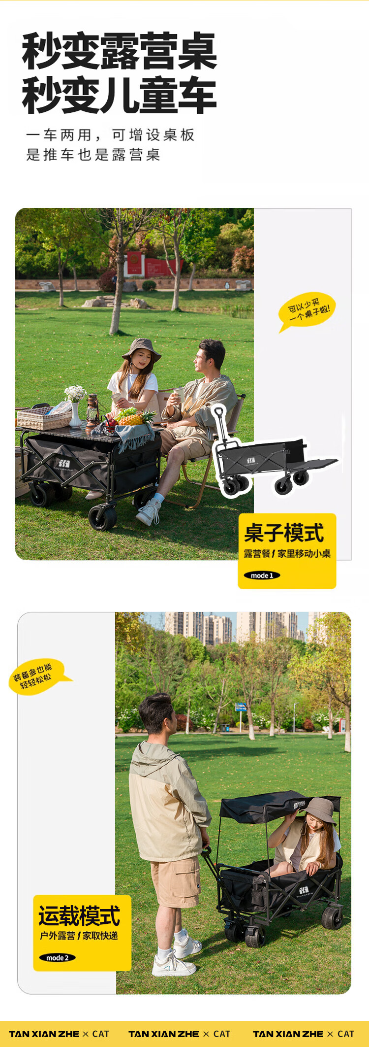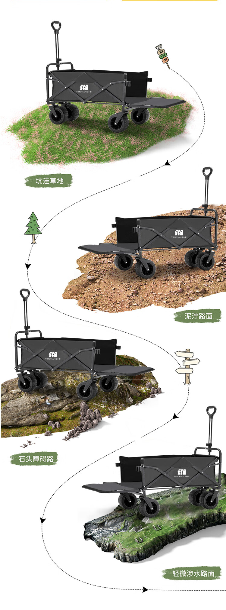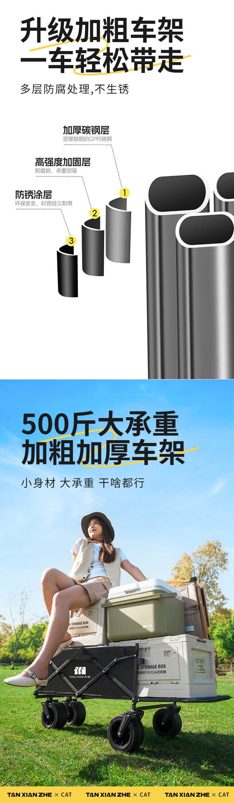 探险者(TAN XIAN ZHE)露营车坦克轮带桌板露营车户外折叠特大号快递车小拖车野餐拉车 350L 曜石黑后开坦克轮+桌板