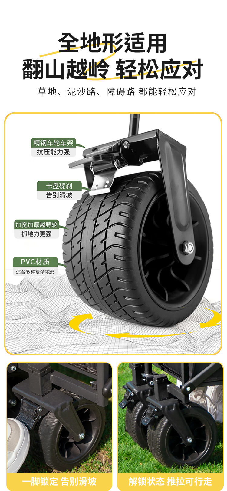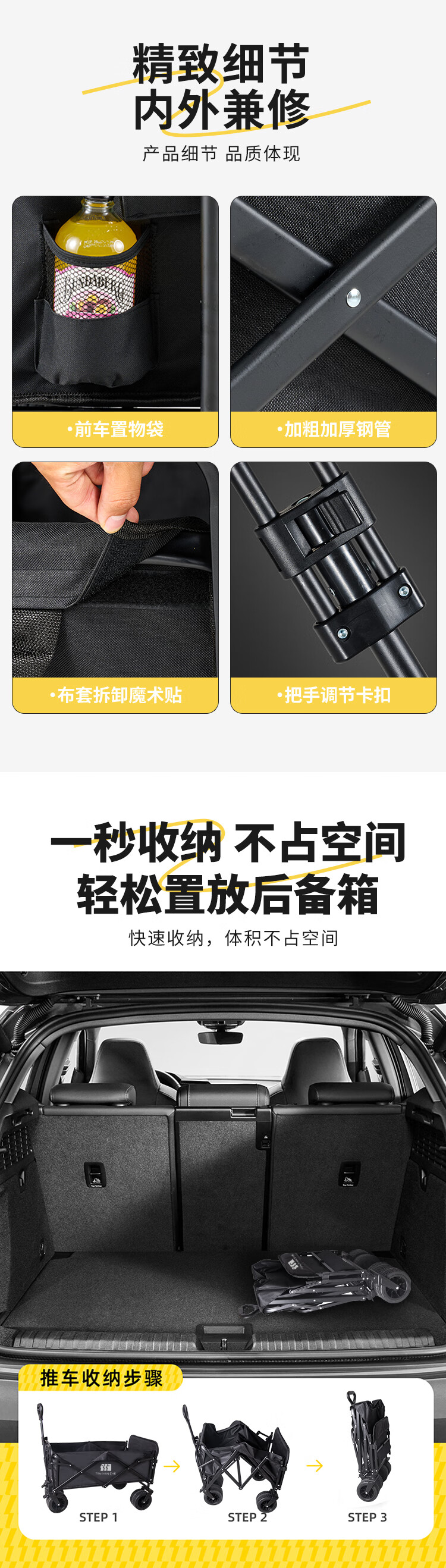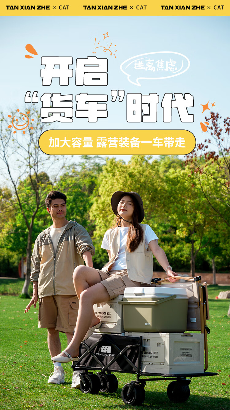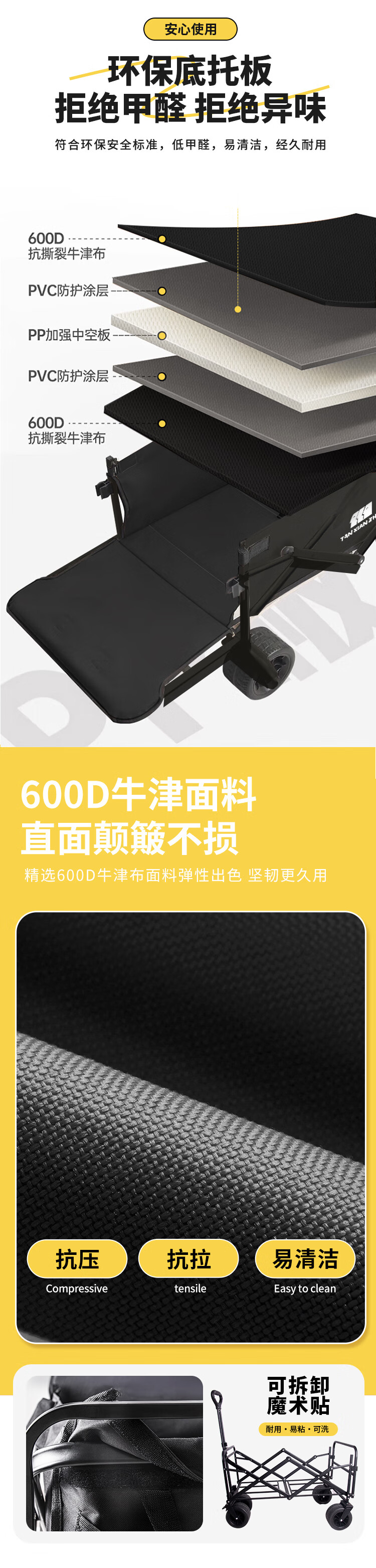 探险者(TAN XIAN ZHE)露营车坦克轮带桌板露营车户外折叠特大号快递车小拖车野餐拉车 350L 曜石黑后开坦克轮+桌板
