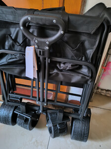 这车挺重的,挺好,就是感觉价钱有点贵,轮子挺大,能装东西。能放小孩,质量感觉也行,收起来也方便,收完也不算小巧,主要挺重,后面少了一个杆,容易扎到人