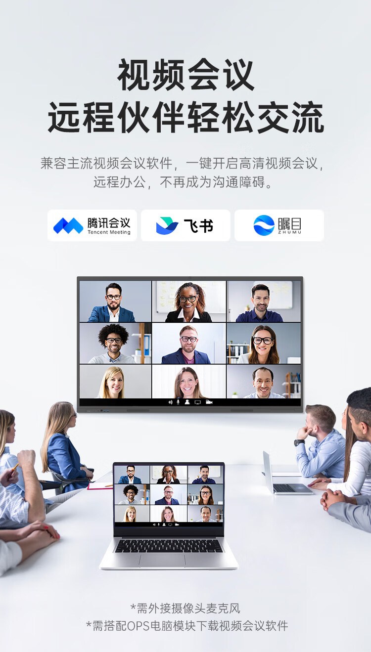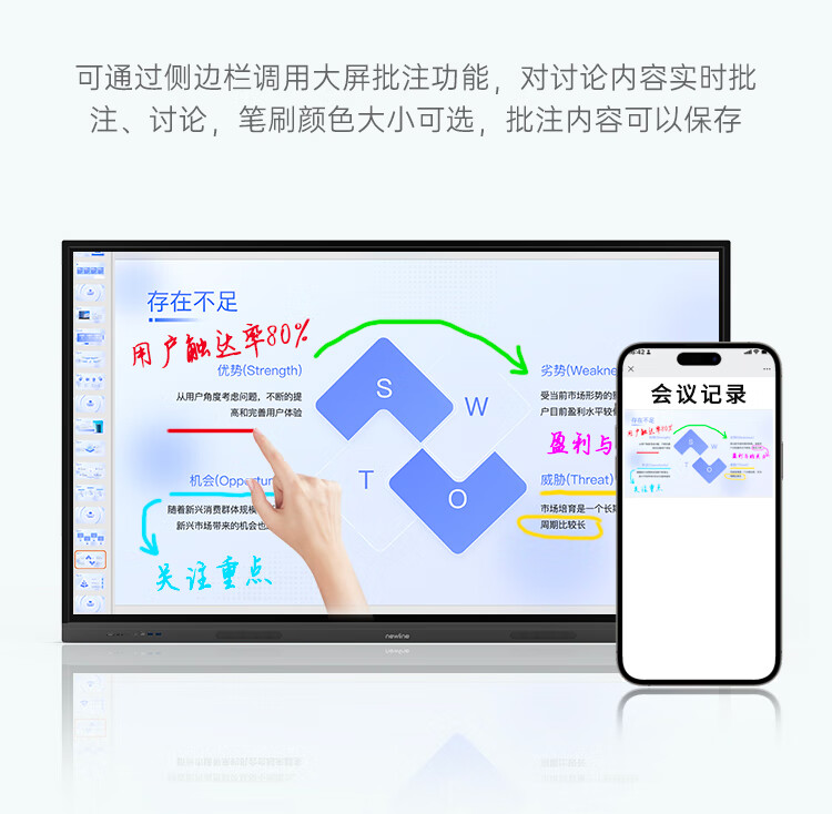 鸿合newline会议平板一体机4800W摄像头8米麦克风触摸屏智能电子白板电视大屏尊享版 98英寸会议平板一体机(咨询客服报价)