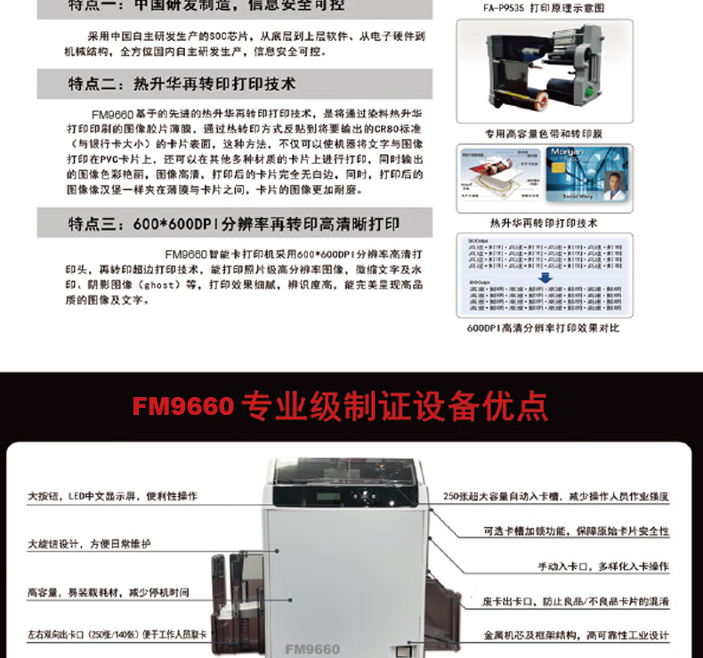 FagooFM-9660证卡打印机 高清晰再转印证卡打印机 600DPI证卡机制卡机 工作证打印机医保社保卡打印机 耗材(色带膜带500印/套)
