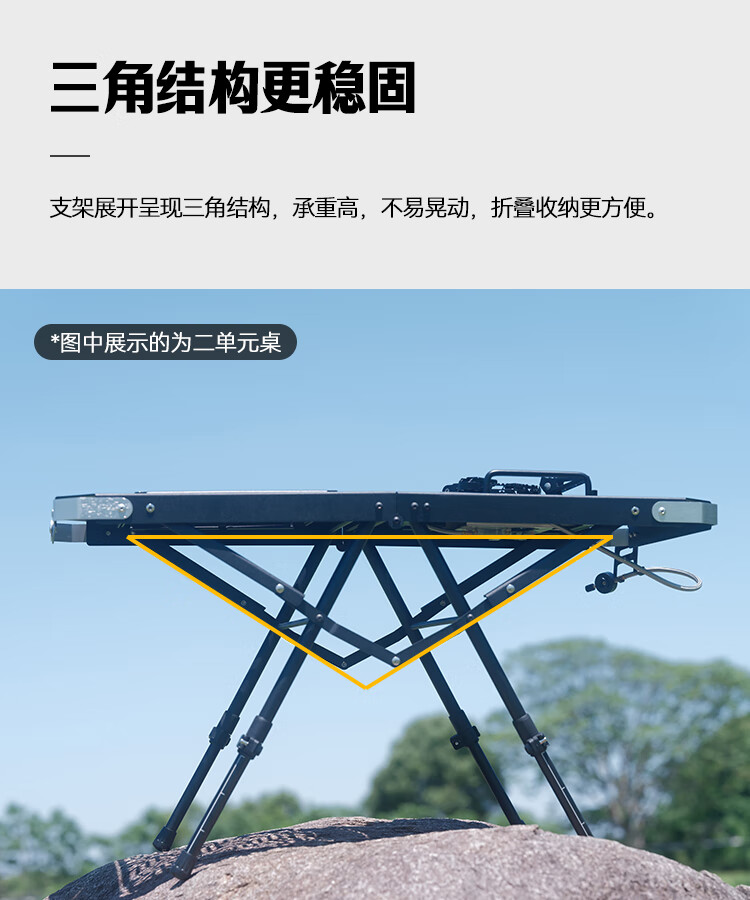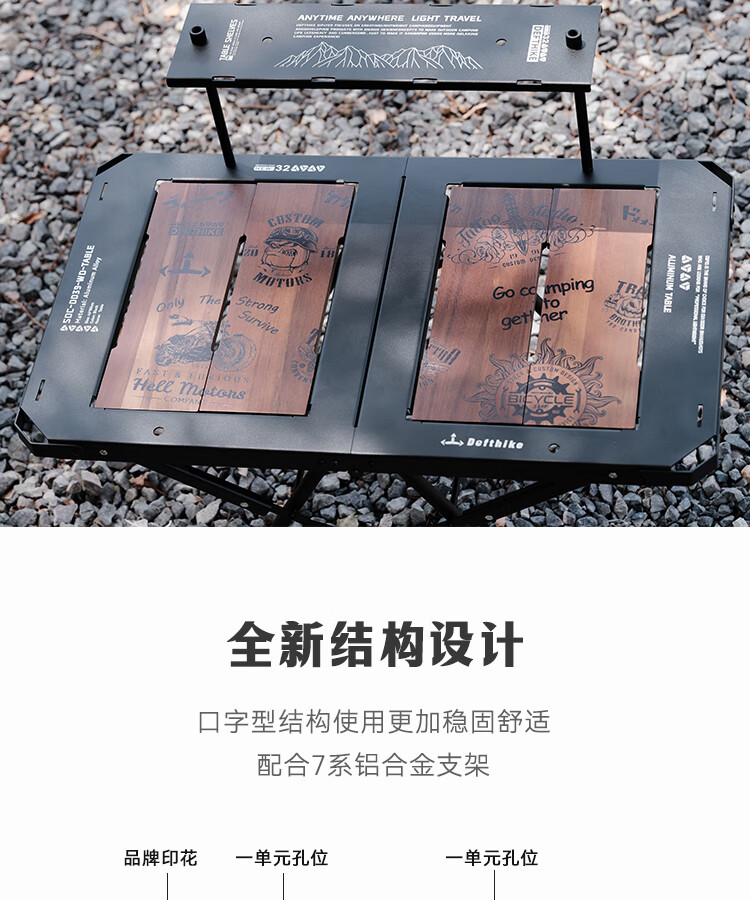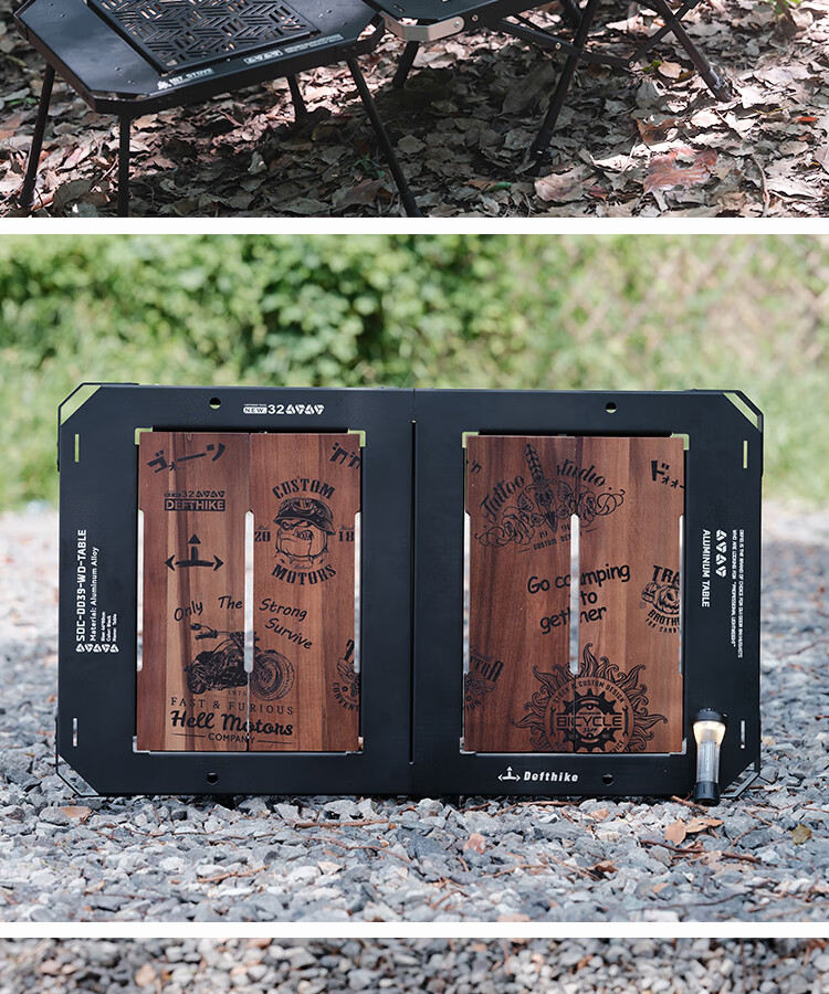 Guide Series户外铝合金折叠桌露营桌便携升降沙滩烧烤桌加宽桌自驾游车载桌 新 加宽金属 木纹黑色