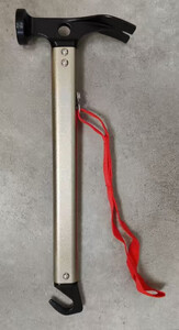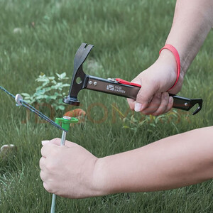质感还是不错的,zuogoong也比较好, 产品重量:上手还是有一定的分量的,但是不会觉得沉,毕竟还是个榔头。 产品材质:合金,带防护的绳套,避免脱手。 适用场景:户外扎帐,敲地钉,取地钉用的,户外扎帐还是比较常用的工具。