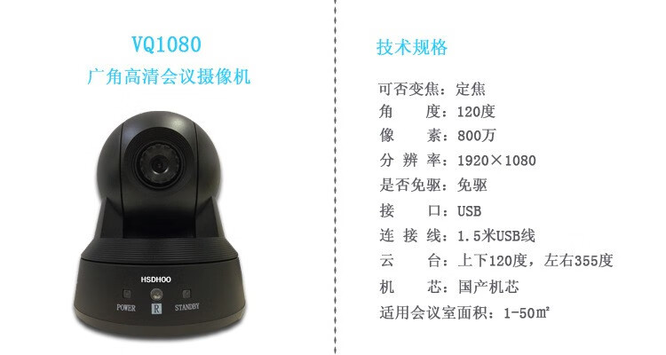 华视动狐华视VQ1080P定焦大广角USB接口高清视频会议云台摄像机/免驱即插即用USB2.0视频会议摄像头 [定焦USB接口视频会议摄像