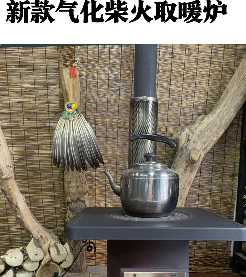 冬天新型农村无烟柴火气化取暖炉家用室内铸铁煤炭烤火两用回风灶 气化柴火炉经济款+烤箱+基础套餐.