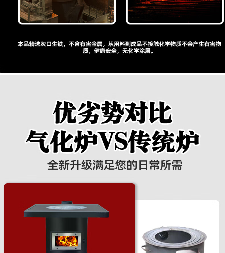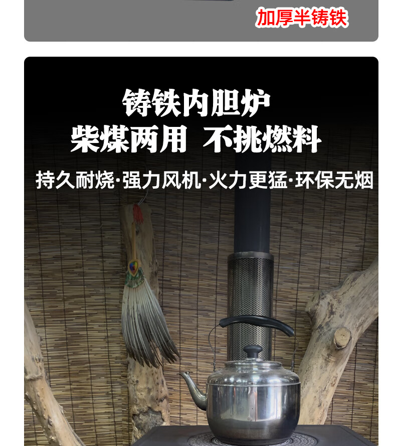 古慕妮农村柴火灶高档柴煤两用炉家用冬季无烟加厚户外气化炉取暖 猛火气化炉