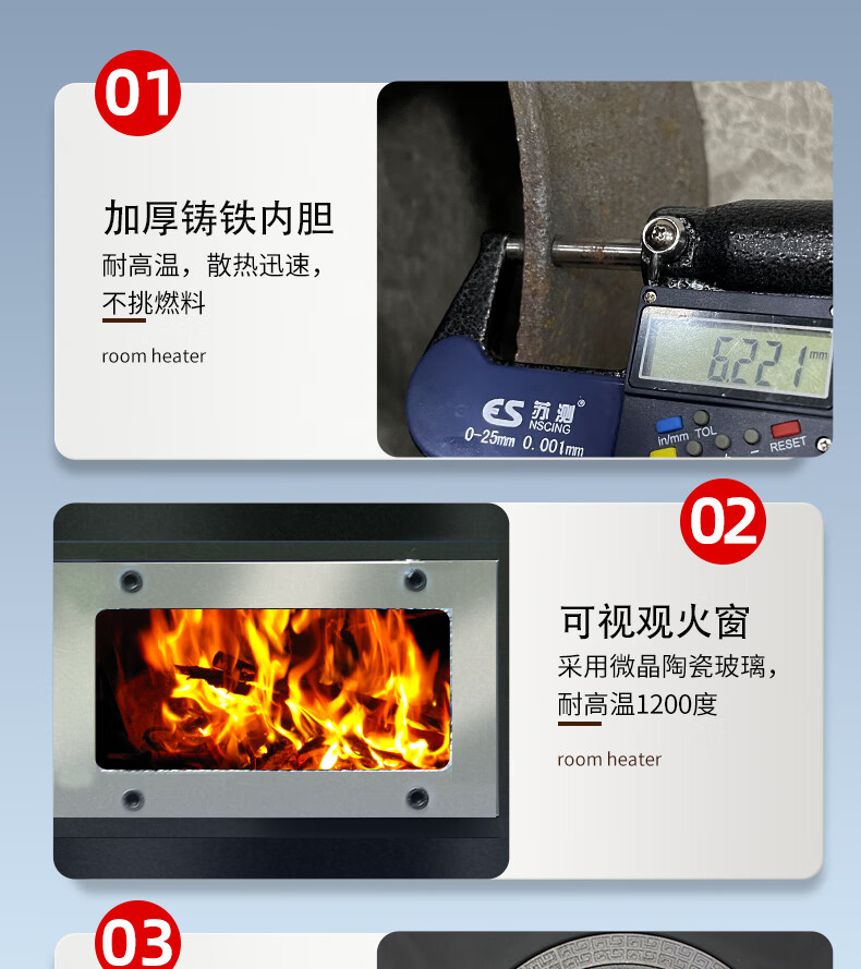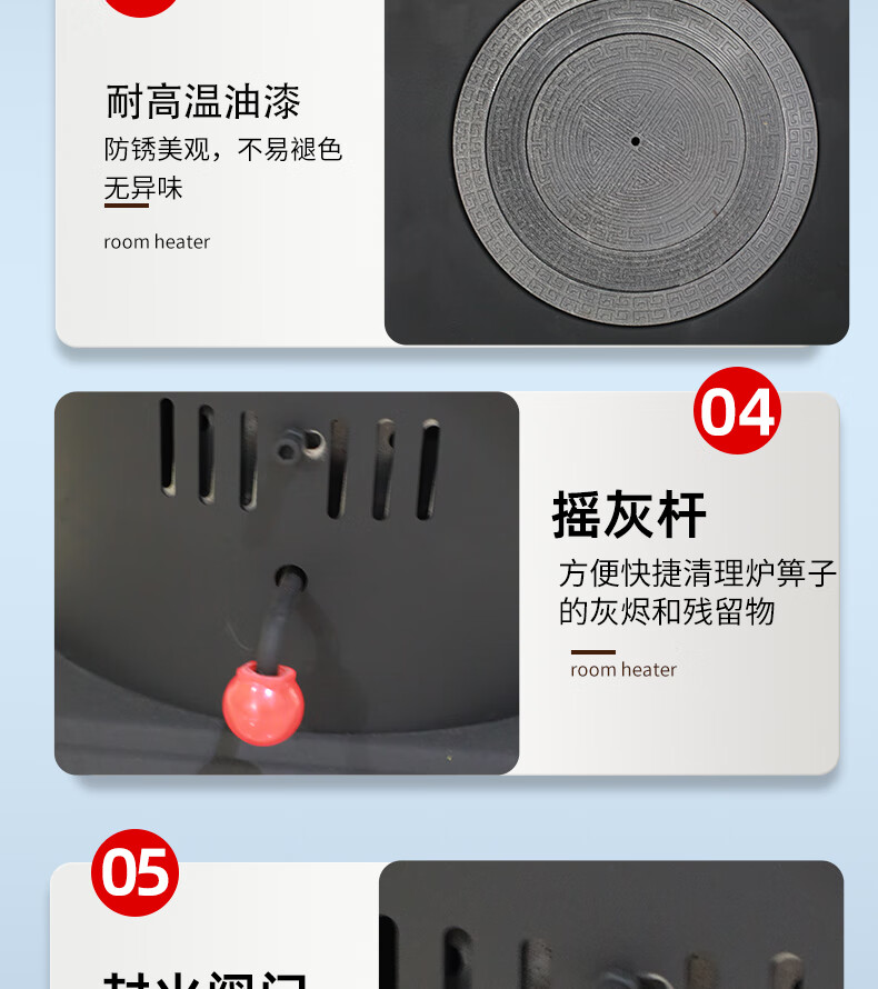 Pauline Pesery铸铁蜂窝煤取暖炉生铁浇铸煤球采暖家庭用养殖用火 4块12厘米蜂窝煤铸铁炉身