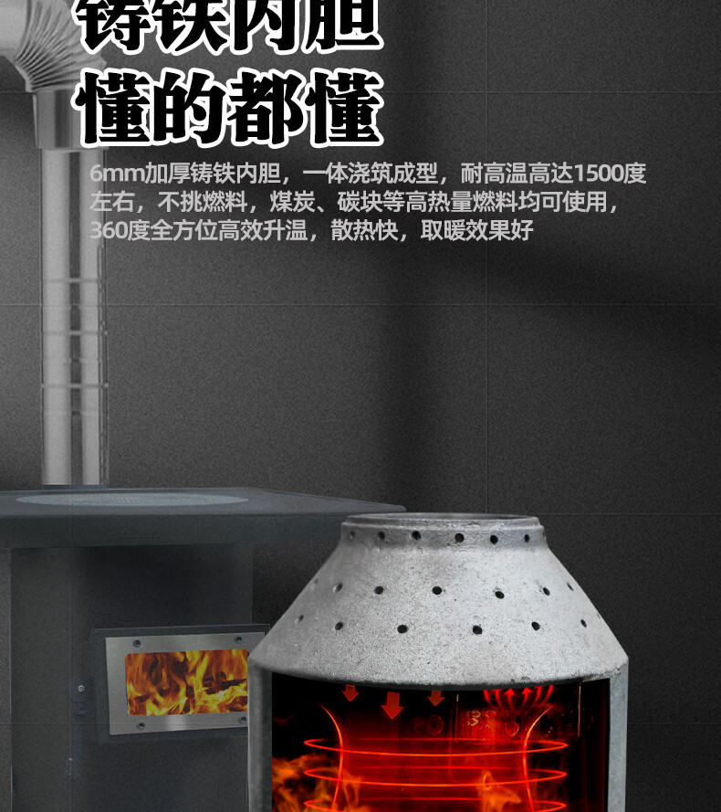 取暖炉冬季通炕炉憋气炉柴煤两用加大号冬天柴炉家用室 加大号带水箱炉