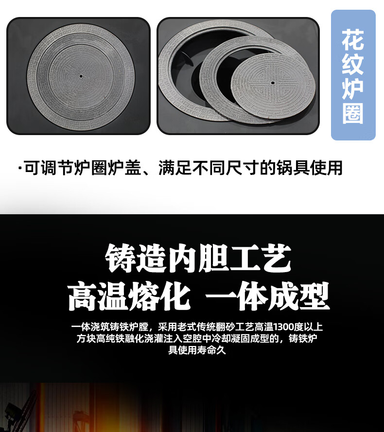 烽点柴火灶气化炉无烟家用农村户外烧木柴取暖煤炭两用铸铁大锅台移动 45中号卫士气化炉+炉圈炉盖