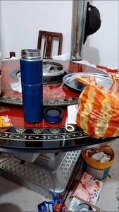 炉子收到了,先用的烧柴火的内胆,特别好用。水箱一会都烧开了,铁壶烧水也快。炉子有桌面稳着炉子吃饭还暖和
