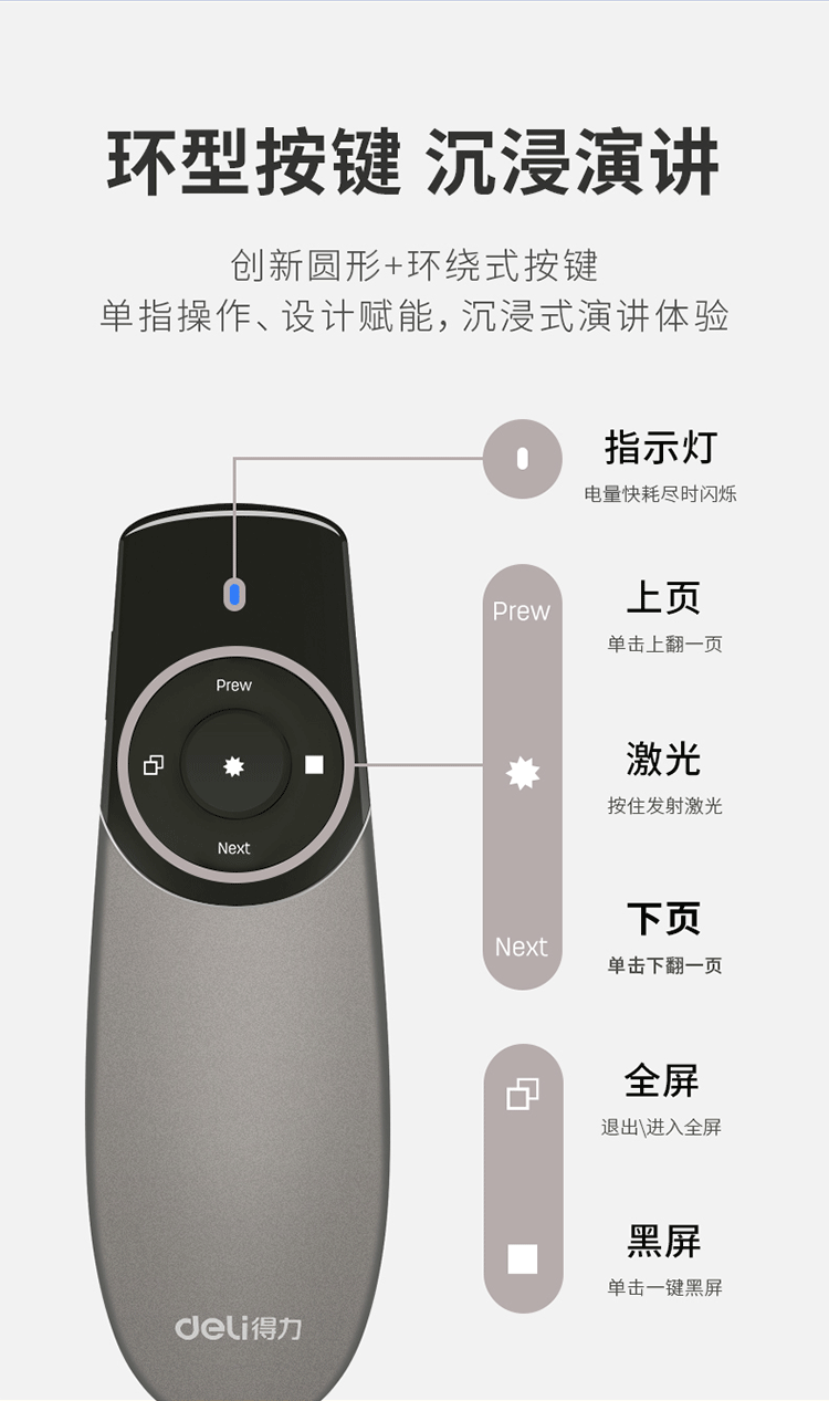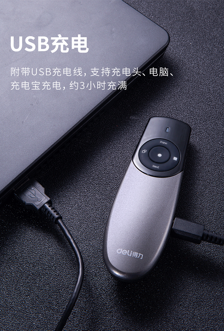 得力(deli) 可充电翻页笔电子笔演讲笔 PPT翻页笔 投影笔激光翻页笔教鞭 无线演示翻页器 红光 2805