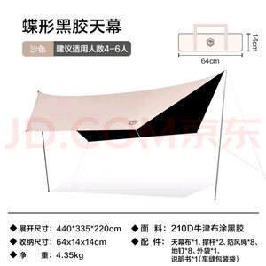 前段时间迷上了户外露营,为了能有更舒适的体验,我在选购天幕上花了不少心思,对比了众多产品后,最终入手了京东京造蝶形黑胶天幕,使用过后,真的想给大家疯狂~!先说这防晒效果,简直绝了!它采用的黑胶涂层技术,能有效阻挡99%以上的紫外线,防晒指数高达UPF50+。上个周末去露营,阳光格外毒辣,同行朋友的普通天幕下热得难受,而我在京东京造蝶形黑胶天幕下,感觉就像待在空调房的阴凉处,丝毫没有被烈日灼烧的感觉,舒舒服服地享受着户外时光。再谈谈防雨性能,之前露营时突然遭遇一场小雨,本以为要手忙脚乱,结果这天幕完美应对。它的190T防泼水面料,有着荷叶拒水工艺,雨水滴落在上面迅速滑落,天幕内部完全没有渗水的情况,轻松保障了我们在里面愉快玩耍,完全没被这场雨扫了兴致。天幕空间也让我超满意。我买的中号,有着22㎡超大空间,蝶形美学设计搭配独特六角造型,不仅好看,空间利用也很合理,家庭聚会或者朋友小聚都没问题,我们上次8个人在下面,还能自由活动,一点不觉得拥挤。而且,它的结构超稳固,搭配加固支撑杆与加强锁片,撑杆处金属锁片结合双层加固边角,有效分散拉力,抗风耐撕裂;双重缝线工艺,进一步提升稳固性。