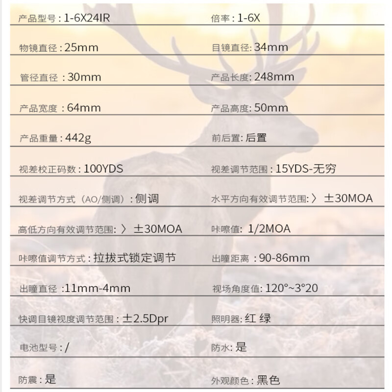 突鹰突鹰ER1-6X24瞄准镜户外速瞄8倍镜带红绿灯一体管径强抗震寻鸟器 ER1-6X24IR K185管夹