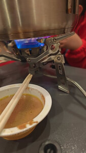 火力够大,四个人吃火锅够用,挡风板也给力,早上在服务区用的,这会儿在酒店就没上场!