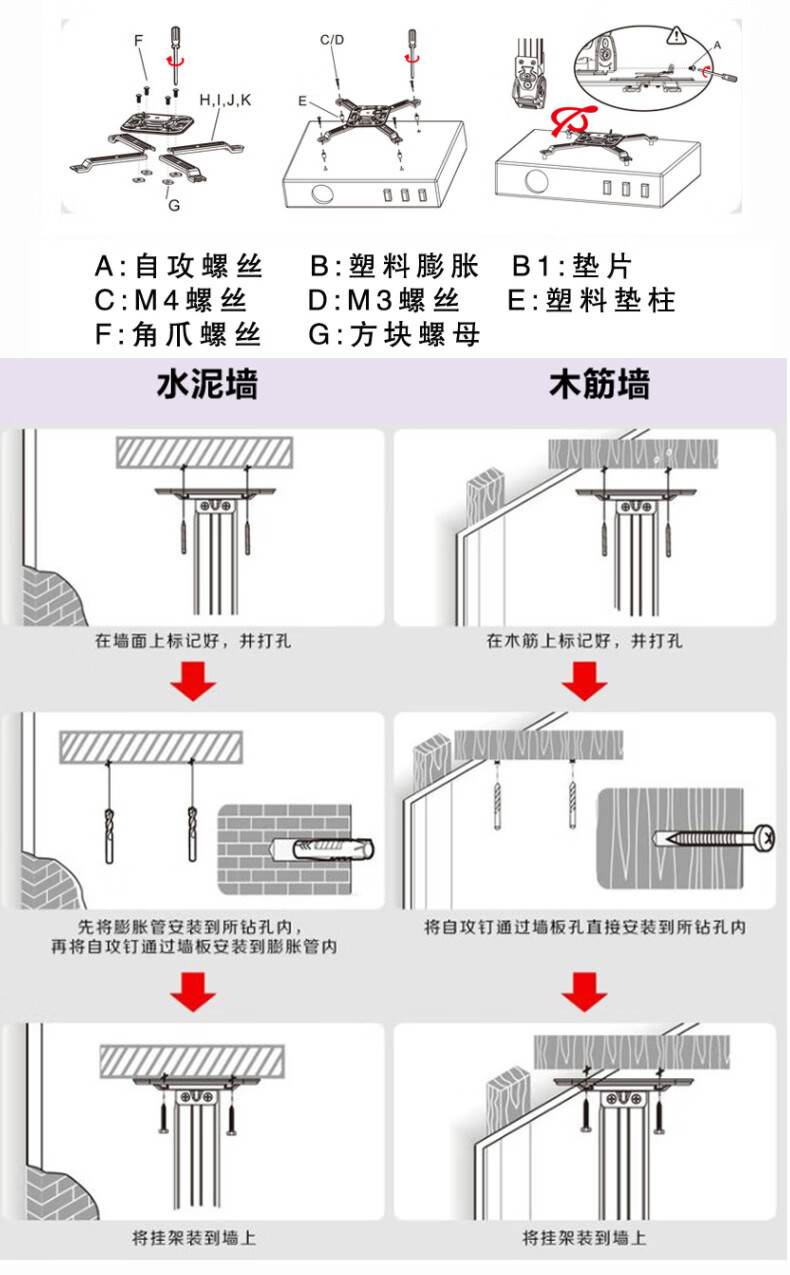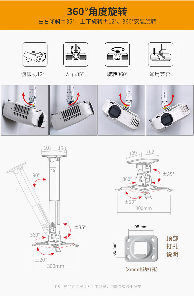 新尔菲涅尔投影仪吊架 爱普生明基索尼米家吊顶投影仪吊架万能投影机壁挂通用伸缩家用投影机吊架支架 H120投影仪吊架