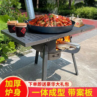 襄睿户外柴火炉灶新款农村家用一体灶烧柴围炉煮茶款新型节能炉子灶台 53CM加厚1体炉+可折叠桌板+无圈
