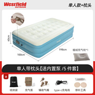 westfieldoutdoor起司全自动充气床垫户外我飞便携电动气垫床防潮可家用打地铺午睡 【水波蓝单人加高款丨带枕头】 全自动充气