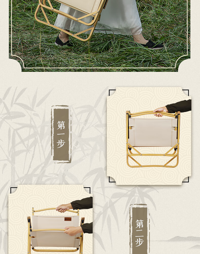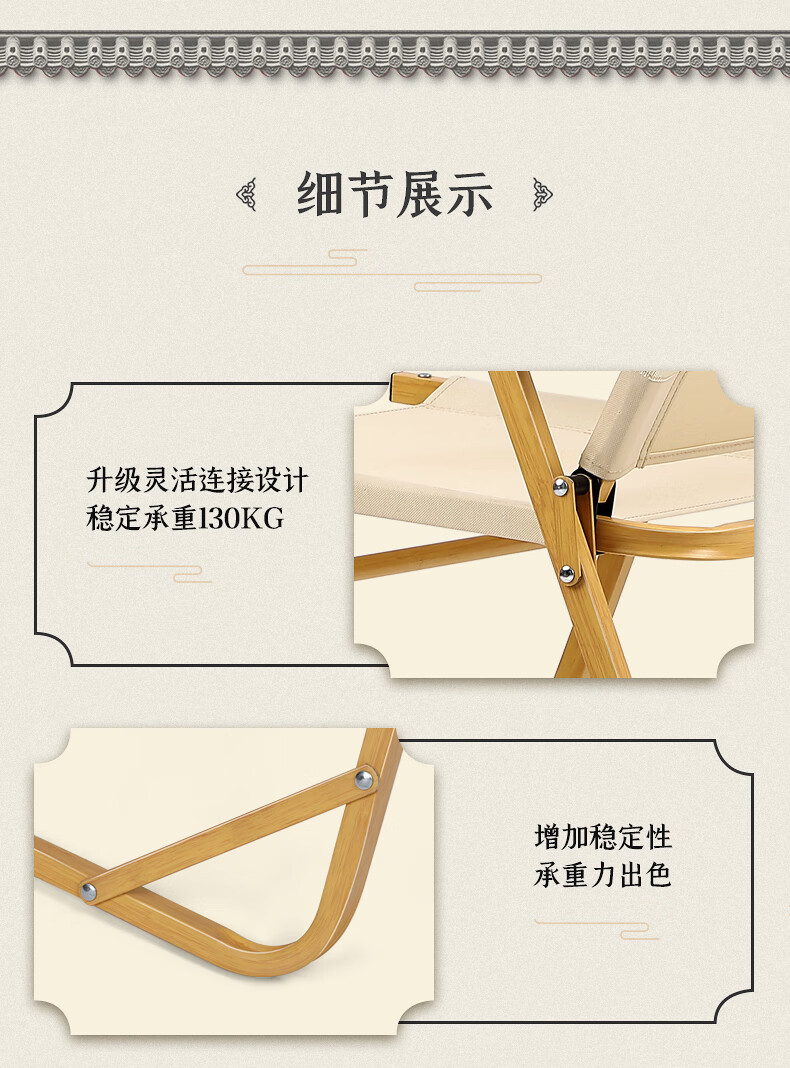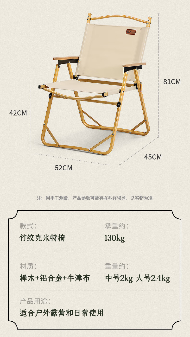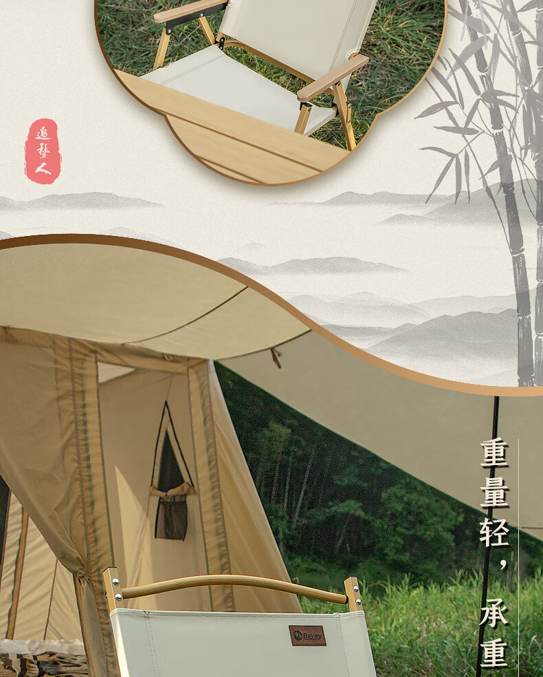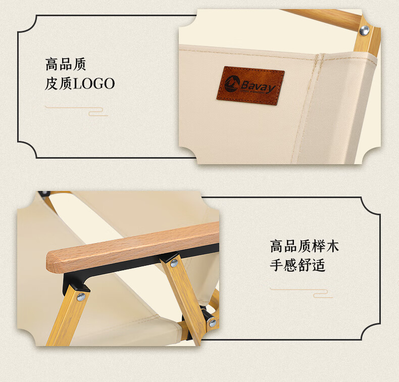 北欢 Bavay/户外折叠椅野营便携折叠导演小凳子克米特椅实木椅子 【竹纹铝合金超轻椅】中号