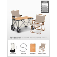 北欢 营地车露营车户外推车营地野餐手推车桌板野营拖车可折叠拉杆车 米色+木纹桌板+大号米椅*2