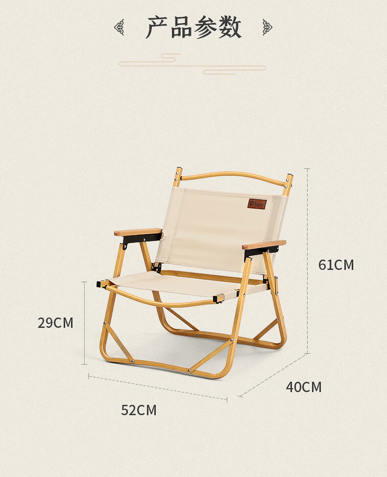 NatureHike挪客 户外便携折叠椅子 野餐露营铝合金休闲椅 靠背钓鱼凳子 卡其