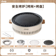 JEEP烤火炉烤火盆烧烤架户外取暖炉室内烧烤炉家用碳炭围炉煮茶 奶油白【不粘煎盘+烤网款】