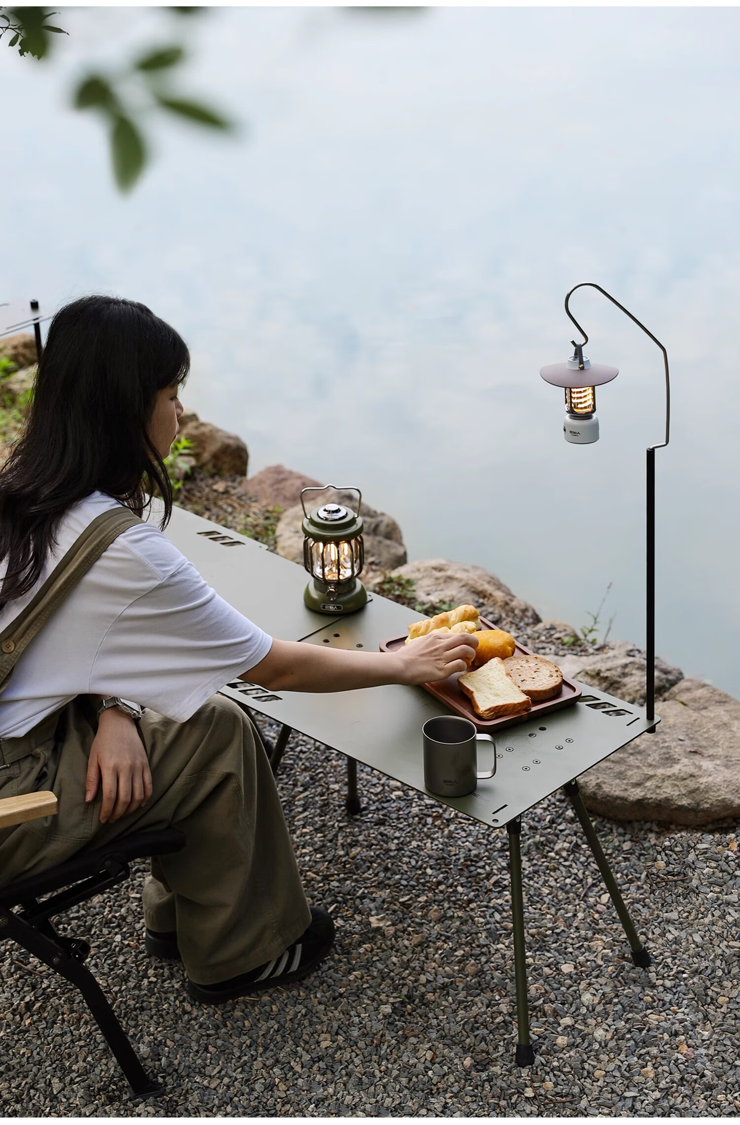 Guide Series户外铝合金折叠桌露营桌便携升降沙滩烧烤桌加宽桌自驾游车载桌 新 加宽金属 木纹黑色
