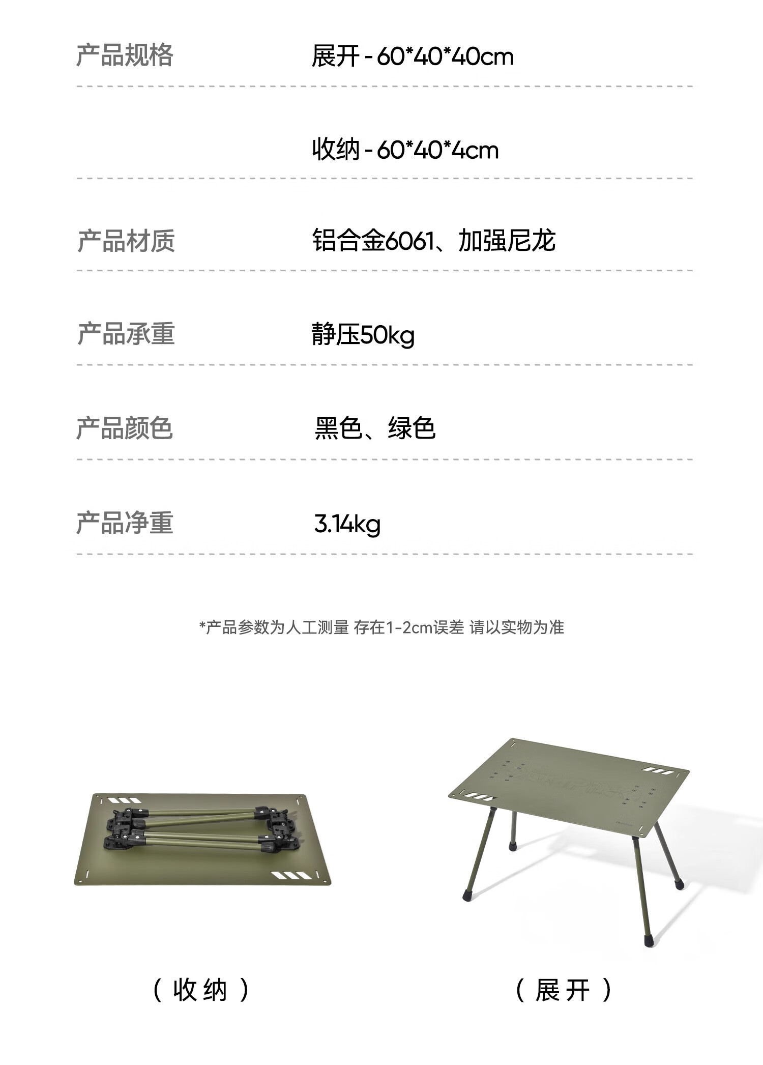 原始人IGT桌子户外战术桌便携铝合金折叠桌露营野炊装备用品全套 桌板-绿