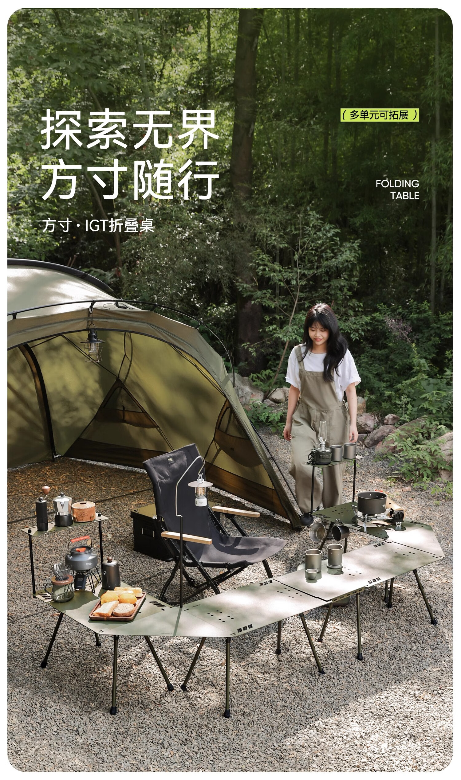 拓村户外igt露营桌单元炉组合野炊模块化猛火炉头网红防风战术桌组合 【一桌四椅】绿色IGT桌+IGT炉+拓展板(送灯架)