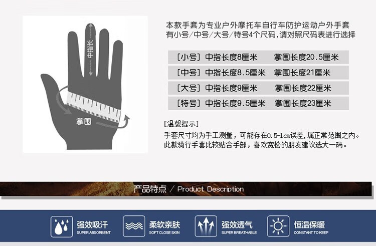 齐莛内全指战术手套户外内手套春秋季骑行加绒保暖触屏手套骑车内手套 伍内全指手套 大号XL