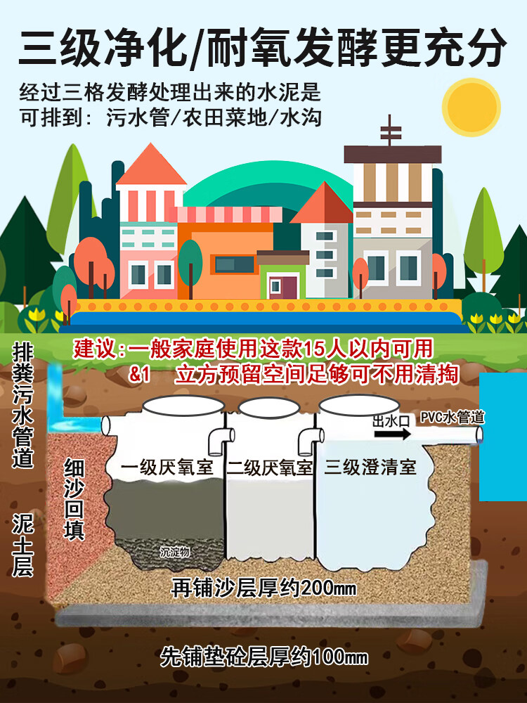 这个PE三格化粪池非常不错!设计合理,质量可靠,使用起来非常方便。尺寸精准,安装简单,能够很好地处理日常污水。物流服务和商家服务都非常棒,配送速度快,售后服务态度好。非常满意的一次购物体验!👍👍👍🌟🌟