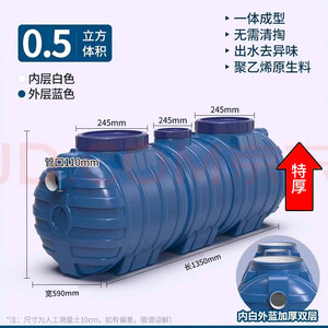 海德然 【送货上门】化粪池PE塑料桶新农村改造环保家用三格一体地埋款 蓝白双层1810*1000*1100(2方)