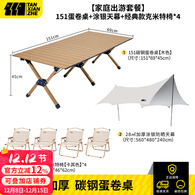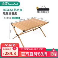 山扉山扉滑轨铝合金蛋卷桌便携式露营装备野餐野营桌套装户外折叠桌椅 103cm【加高款】榉木色 3-6人