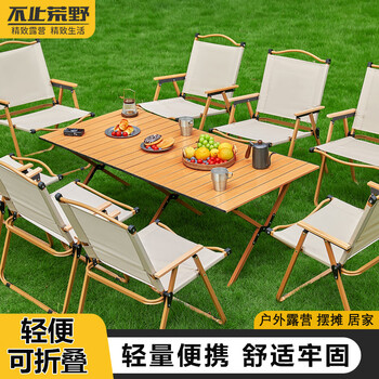 不止荒野户外折叠桌椅套装露营野餐桌蛋卷桌野餐椅子围炉煮茶便携式沙滩桌 【卡其】120CM桌+6张椅子 【加厚碳钢支架】
