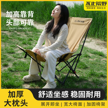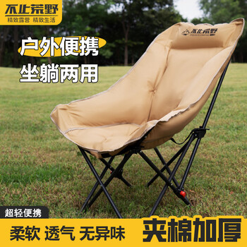 不止荒野折叠椅户外月亮椅钓鱼椅高背露营3档调节野餐沙滩椅午休椅躺椅 卡其【高背加棉】【三档调节】 高强度碳钢材质