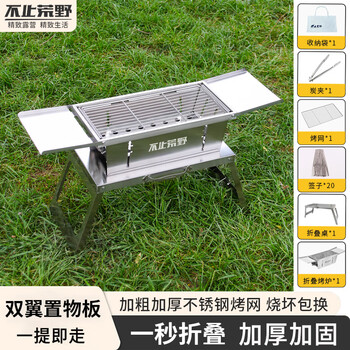 不止荒野烧烤炉烧烤架碳烤炉碳烤架不锈钢折叠便携式户外烤串烤肉露营野餐 003【分体式碳烤炉】6件套